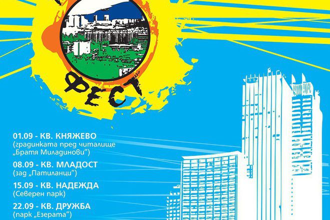 Всяка неделя от месеца "Кварт фест" ще се разполага в парковите пространства на големите столични квартали: "Младост" (на 8 септември), "Надежда" (15 септември), "Дружба" (22-ри), "Люлин" (29-и), а за първи път тази година - и в Княжево (на 1-ви).