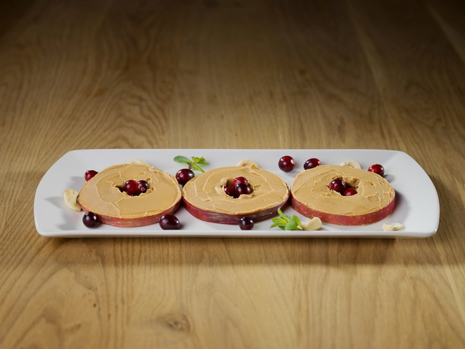Здравословният вариант на донъта е ябълка, нарязана на напречни кръгове, които се намазват с фъстъчено масло - по рецепта на фитнес модела Здравка Максурова.