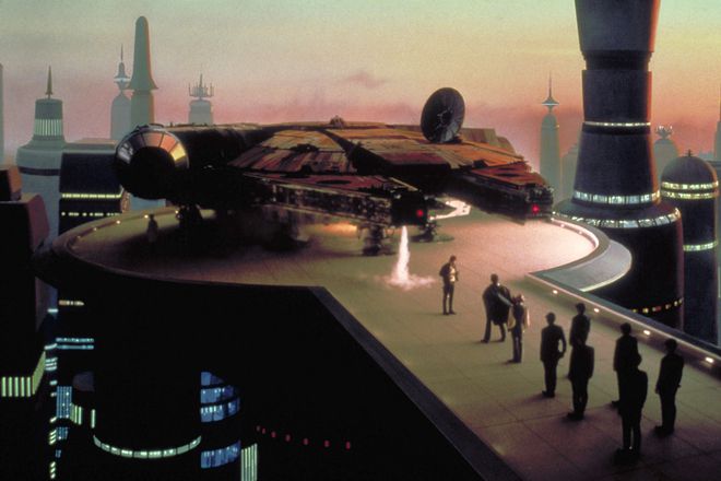 "Хилядолетният сокол" в "Империята отвръща на удара", когато каца в Облачния град на своя предишен собственик Ландо Калрисиян