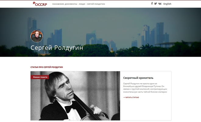 Публикацията на в. "Новая газета" за Сергей Ролдугин по "Панамските документи", озаглавена "Тайният пазач", в сайта на Центъра за изследване на корупцията и организираната престъпност (OCCRP)