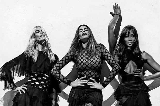 Супермоделът празнува половинвековен юбилей на 20 февруари, а междувременно позира в пролетно-лятната колекция на Balmain с колежките си Клаудия Шифър и Наоми Кембъл