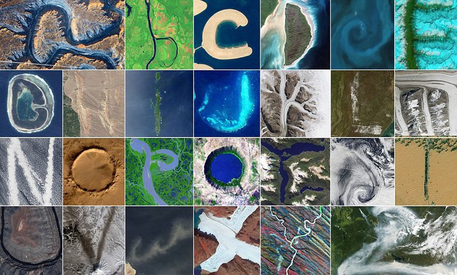 Сателитни снимки от обсерваторията на НАСА и фотоси, направени от астронавти в околоземна орбита, откриват по повърхността на планетата изображения, напомнящи буквите от латиницата - общо 26 пейзажа.